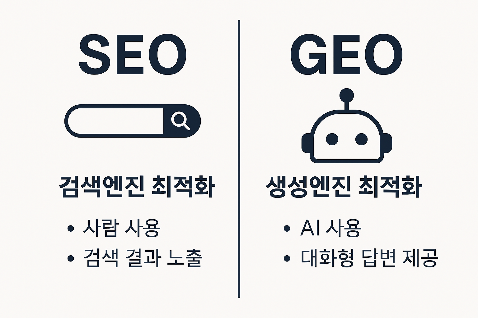 | 대상 | 구글/네이버 검색엔진 | ChatGPT, Claude, Perplexity |