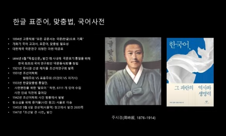 1894년 갑오개혁기 칙령에서는 “법률·칙령은 국문을 본으로 한다”는 조항이 포함돼 공문서에 국문 사용이 공식화됐다. 이후 1921년 조선어연구회, 1931년 조선어학회로 이어지며, 1933년 민간 주도로 「한글 맞춤법 통일안」이 제정됐다.